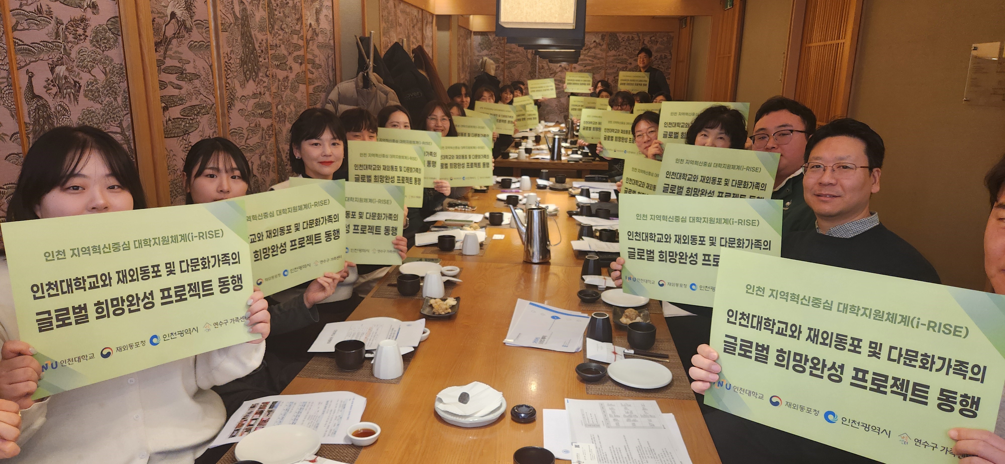 이날 인천대학교에서는 대외협력과를 비롯 대학생활지원과·RISE전략과·사회복지학과·스포츠과학부·법학부·공자학원·지역동행플랫폼·과학영재교육연구소 등 9개부서가 참여했고, 교외기관으로 재외동포청 재외동포정책과와 귀환동포정착지원과·연수구 가족센터가 참여한 가운데 성공적인 2026 글로벌 희망완성 프로젝트 운영과 협조를 다짐했다.